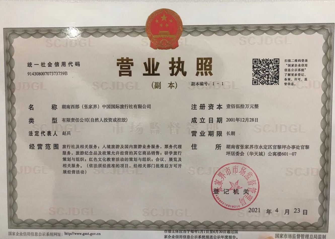 湖南西部(張家界)中國(guó)國(guó)際旅行社有限公司