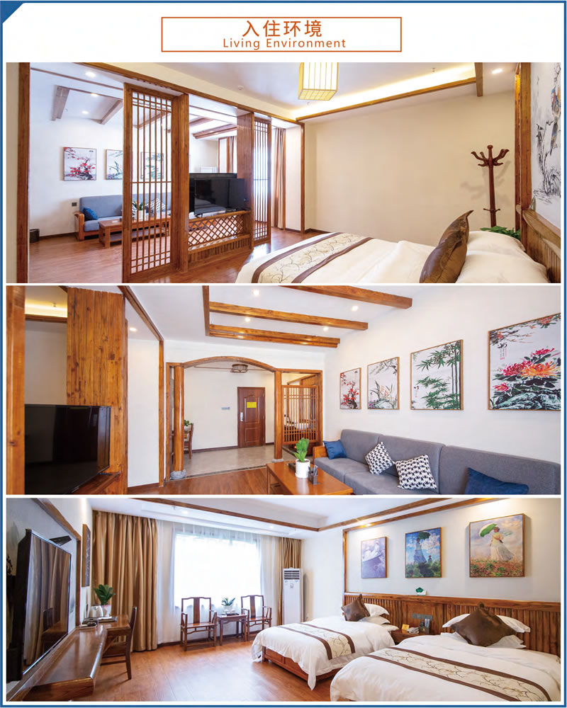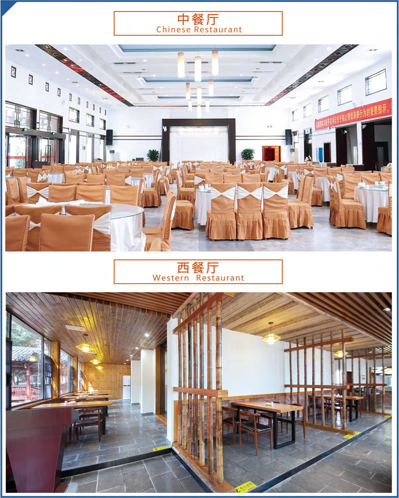 這里設(shè)施完備,環(huán)境優(yōu)美。占地70余畝,建筑面積23000余平方米,由多座湘西民族風(fēng)格的園林建筑群組成。院外依山傍水,院內(nèi)綠樹成蔭,環(huán)境優(yōu)美怡人,F(xiàn)有客房4棟,各類客房279間,中西餐廳可滿足500人同時就餐。大小多功能會議室、棋牌室、健身房、藍(lán)球場、羽毛球場等設(shè)施均有配備。