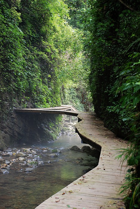 大峽谷中的飛瀑神泉比比皆是,一路游覽下來,讓人目不暇接。峽谷里植被繁茂,空氣清新,涼爽舒適,溪水上彌漫著一層薄霧,宛如來到世外桃源,讓人煩惱頓消。 張家界大峽谷峽谷間是一條清幽的小溪,沿溪邊是用木板搭建的游道, 張家界大峽谷峽谷內(nèi)不僅有傳統(tǒng)的秀美自然風(fēng)光,還云集有三朝數(shù)代的歷史人文景觀,如記錄李自成與吳三桂慘烈決戰(zhàn)的“千人墳”古戰(zhàn)場,反映湘西歷史特色的土匪洞及見證解放初期湘西人民靠天勞作在絕壁間挖鑿的“南方紅旗渠”等。