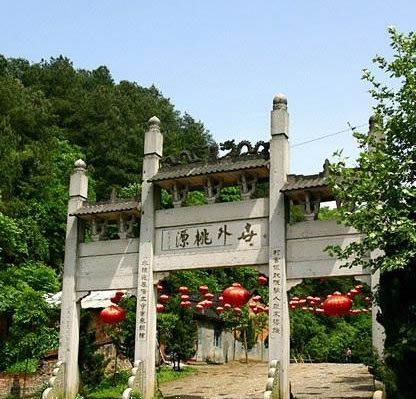 東漢建武二十四年(公元48年),伏特將軍馬援南征五溪"蠻",曾駐軍烏頭村,今桃花源附近尚留有他避暑的"馬援石室"以及他曾設(shè)帳蓬的"營(yíng)盤洲".他的將士曾患瘟疫,當(dāng)?shù)乩习傩斋I(xiàn)"三生湯"(即擂茶)為將士治愈瘟疫,因而桃花源這一帶,留下關(guān)于擂茶的傳說(shuō)和以擂茶待客人的習(xí)俗,相沿至今.就在此后兩年,即東漢建武帝二十六年,從臨沅縣中析置沅南縣,禁屬武陵郡,桃花源屬沅南縣三國(guó),兩晉,南北朝,桃花源均屬武陵郡沅南縣.就在這一歷史階段的晉代(公元前3世紀(jì)中葉至5世紀(jì)初),桃花源這處山水風(fēng)光地便開(kāi)始有了建筑.明陳洪謨編纂的<嘉靖常德府志>載:桃源觀,晉人建."道觀因建在桃源山上,故名"桃源山"即是桃花之源或者桃樹(shù)之源的山,是桃林茂密,桃花繽紛,美不勝收之處.南北朝宋初二年(公元421年),東晉大詩(shī)人陶淵明寫下了千古杰作<桃花源詩(shī)并序>,他用浪漫主義的大手筆構(gòu)造了一個(gè)沒(méi)有紛爭(zhēng).沒(méi)有剝削,沒(méi)有壓迫豐衣足食,怡然自樂(lè)的理想王國(guó)--桃花源,反映了人民群從和平寧?kù)o,幸福美好生活的向往,也體現(xiàn)了人民群眾對(duì)黑暗社會(huì)的抗議.陶淵明從小受儒家"大同世界"的理想,又有道家"小民寡民"的思想的影子.陶淵明繼承了楚文化和屈原的"楚風(fēng)",<桃花源詩(shī)并序>問(wèn)世之后,石破天機(jī),使桃花源聲名大起,現(xiàn)實(shí)中的桃源山,桃源觀,桃花山,桃川宮(即桃源山濱臨之沅江一帶)等名勝景物隨之暇邇聞名.