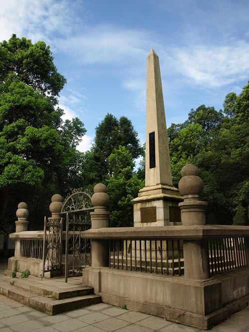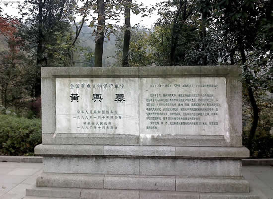 在岳麓山上。墓由三層臺(tái)階百余級(jí)踏步導(dǎo)入,墓碑為一四棱形的整塊4乳白色巖石琢成,全高約10米,因地處岳麓山高峰開闊處,顯得格外聳拔、挺秀、眺望湘江江,長沙景物盡入眼底。黃光(1874—1916),朱名軫,號(hào)杞園,又號(hào)克強(qiáng),湖南善化(今長沙)人,辛亥革命重要領(lǐng)導(dǎo)人,史有“孫黃”之稱。1904年組織華興會(huì),翌年8月與孫中山、章太炎等人組織中國同盟會(huì),曾生動(dòng)并領(lǐng)導(dǎo)欽州、廉州(治今廣西合浦)、鎮(zhèn)獻(xiàn)花(今友誼關(guān))、河口、廣州等地區(qū)反清戰(zhàn)役起義,任民軍戰(zhàn)時(shí)總司令。南京臨時(shí)政府成立,任陸軍總長。袁世凱稱帝后,任討袁軍總司令。1914年赴美醫(yī)病,1916年病重回國,10月31日于上海病故,時(shí)年43歲,次年移柩長沙,國葬于岳麓山。為全國重點(diǎn)文物保護(hù)單位。