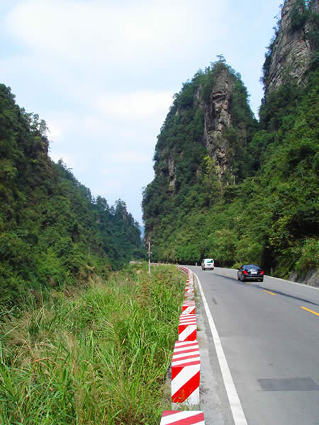 百丈峽圖片 百丈峽是武陵源風景名勝區(qū)通往張家界市的公路貫通整個峽谷,因有堵高近百丈的石壁,直插云霄,不敢仰視,故而得名。據(jù)《慈利縣志》載,索溪峪右得百丈峽,峽長三十公里……又相傳向王天子起義軍與官兵在此先后博殺一百仗,依此又名百仗峽。明代九永兵備胡桂芳,一生好游歷山川,來到百丈峽后題寫了一首七言詩:“峽高百丈洞云深,要識桃源此處尋;戎旅徐行風雪緊,誰將興盡類山蔭!笨逃趰{內(nèi)道旁石壁上。