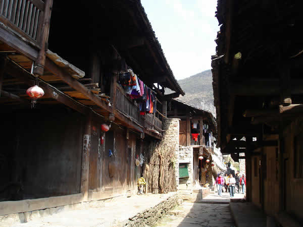 苦竹寨圖片 流水悠悠,人事蒼桑。到了近代,由于陸上交通的迅速崛起,水上交通漸漸衰落,小鎮(zhèn)慢慢地被人遺忘在峽谷之中了。失去了往日繁華的小鎮(zhèn),并沒有失去多少古色古香的本來面目,使我們今天能通過這殘缺的街道、建筑、店鋪,去感受她逝去的風(fēng)采。古老的風(fēng)火墻、底矮的吊腳樓,向游人展示著土家人的聰明才智,一條條青石板、一聲聲咚咚喹,在訴說著古寨子過去的輝煌。