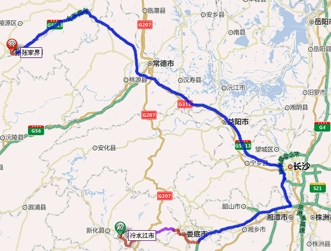 冷水江去張家界自駕車線路圖: