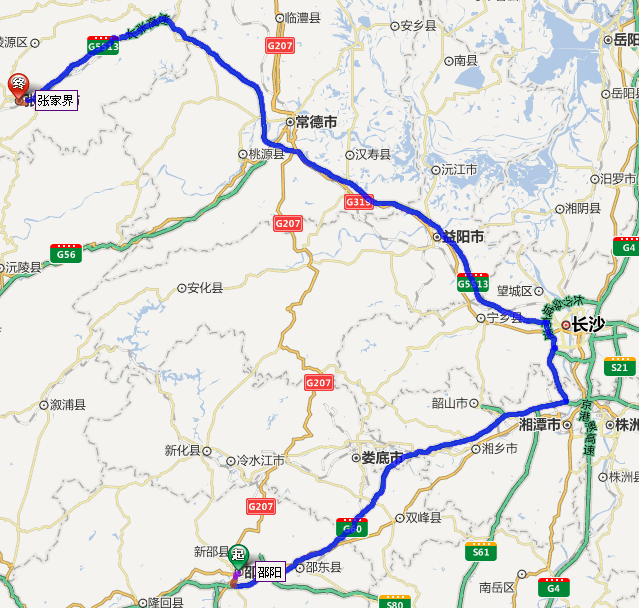 邵陽(yáng)市到張家界自駕車路線圖