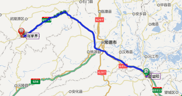 益陽市到張家界自駕車路線圖