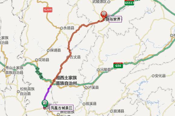 鳳凰古城去張家界自駕車線路圖