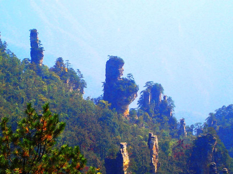 上 午: 導(dǎo)游或者司機(jī)在張家界機(jī)場(chǎng)或車站或者酒店接團(tuán)。旅游車前往中國(guó)第一個(gè)國(guó)家級(jí)森林公園——【張家界國(guó)家森林公園】(約40分鐘車程,門票245元+5元景區(qū)保險(xiǎn)已含)。游覽大氧吧廣場(chǎng)(每立方厘米空氣中含8-10萬個(gè)負(fù)氧離子),登海拔1200米、張家界最大的凌空觀景臺(tái)——【黃石寨景區(qū)】(黃石寨可以乘索道上下,也可以徒步上下。如果選擇乘坐索道,單程65元/人、雙程118元/人自行購買)。黃石寨山頂千山萬壑盡收眼底,沿著山頂環(huán)寨游道行走,可欣賞到許多絕美的自然風(fēng)光,沿途有六奇閣、摘星臺(tái)、雙門迎賓、五指峰、霧海金龜、天然壁畫、黃石松、回音壁、九重壁等景點(diǎn);