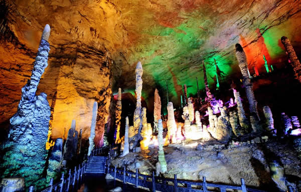 下 午: 游覽地下明珠——【黃龍洞景區(qū)】(門票已含,游覽時約2.5小時):黃龍洞享有“世界溶洞全能冠軍”之美譽,2005年被評選為“中國最美的旅游溶洞”,洞中燈火闌珊、石筍林立,猶如一株株古木錯節(jié)盤根、洞中有洞、洞中有河、無奇不有,真乃名副其實的“地下魔宮”,洞中還有投保一億元的石筍定海神針、響水河、龍王聚會廳、天仙水、天柱街等著名景點。